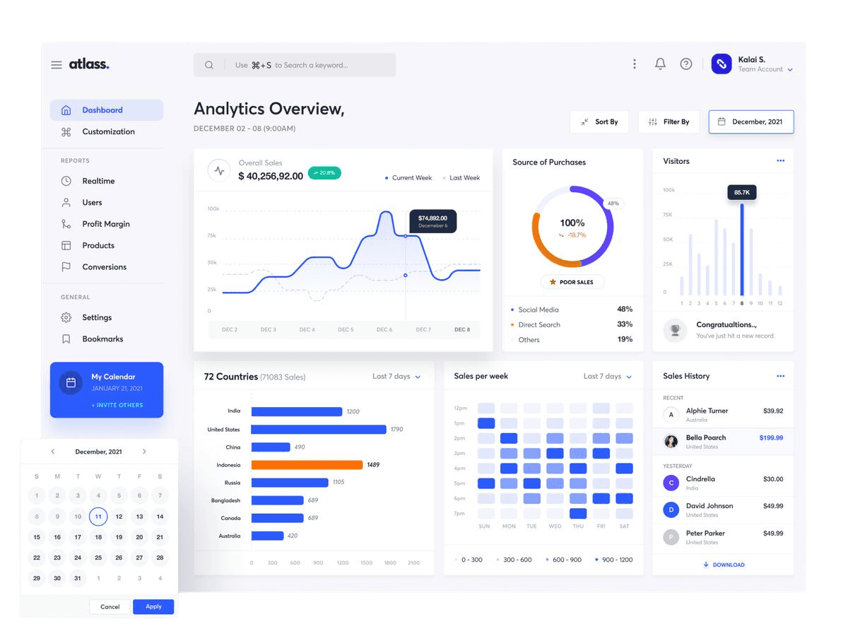 All your data in one place. With Atlass’s intuitive interface, view all key metrics in an organized and visually clear dashboard for easy analysis.
